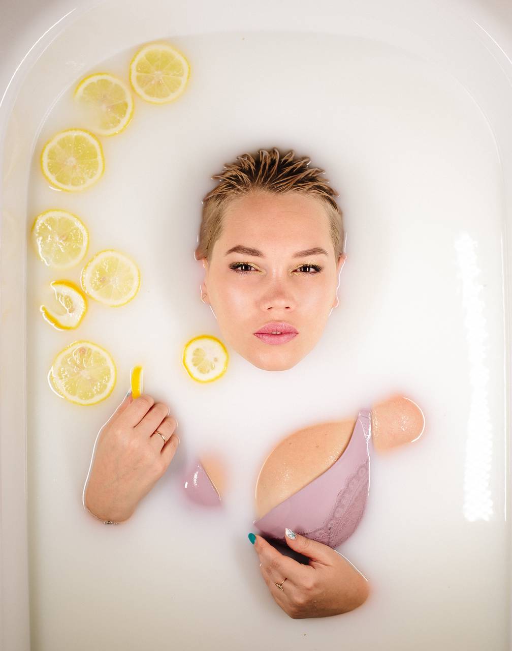 Простой пример - всем известная фотография в ванне с молоком. Такой снимок можно сделать даже без аренды студии - в самой обычной ванной дома. Для нее потребуется всего 5-6 литров самого обычного молока из магазина.